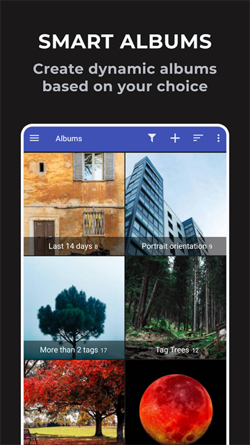 1、智能,智能相册功能可以自动为您创建相册,它可以根据标签、评分、拍摄日期、图片尺寸和其它属性对图片进行分类。仅仅需要设定一个分类条件就可以了,例如标签包含家庭的照片或评级为5星的视频。软件会自动创建相册并不断地更新内容。