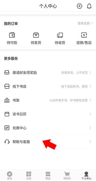2、点击“帮助与客服”。