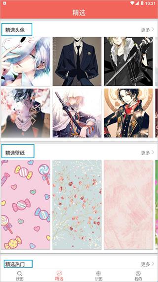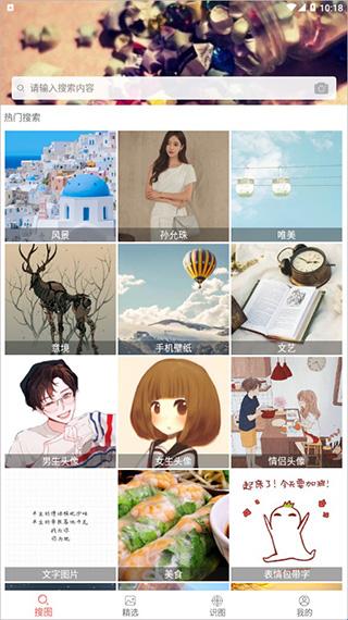 5、在主界面的精选这块,可以进行搜索头像、壁纸、热门图片;