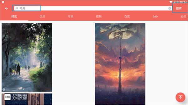 3、搜索任何关键词的美图,比如:美,风景等,可以随意输入关键词进行搜索。