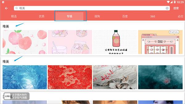 4、另外,你在搜索图片的同时,图片大全搜图神器还能链接到优质、专辑、搜狗、百度、360、必应六大模块里面去;