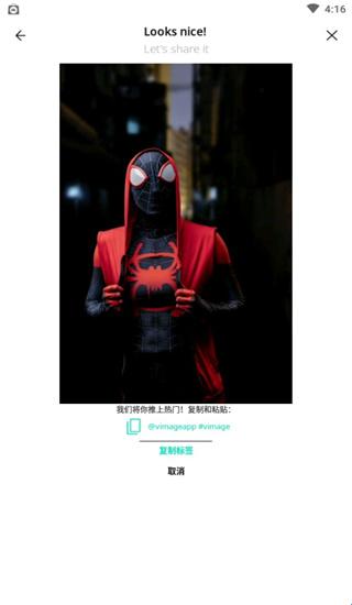 4、保存您的vimage,就可以开始发布了。只需按一下按钮,就可以在Instagram或任何其他社交媒体上分享它,让你的创造力得到应有的认可。