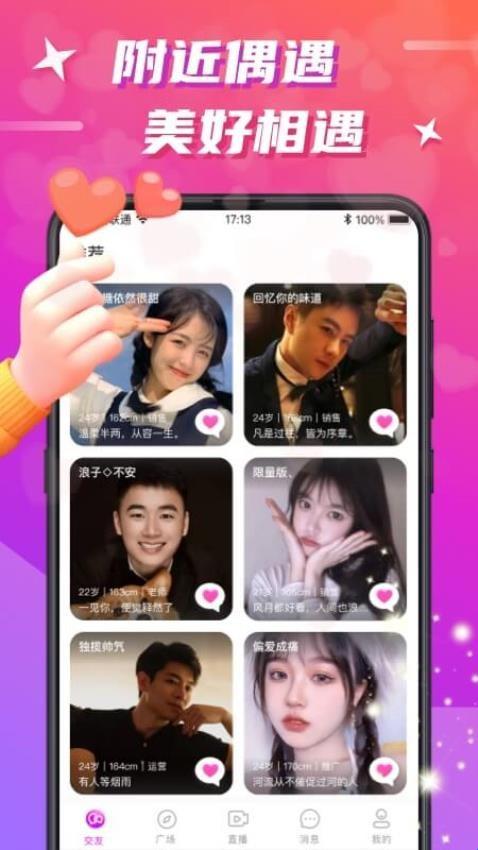 3、1分钟注册,3分钟聊天约会,24小时在线甜言蜜语热聊,直播互动,分享动态。