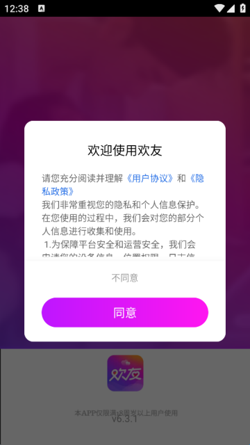 1、在本站下载安装欢友聊天进入并同意用户协议。