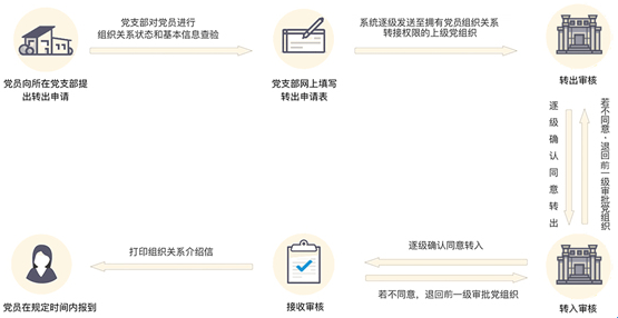 用户需前往党组织关系所在党支部办理转接手续,具体流程如下: