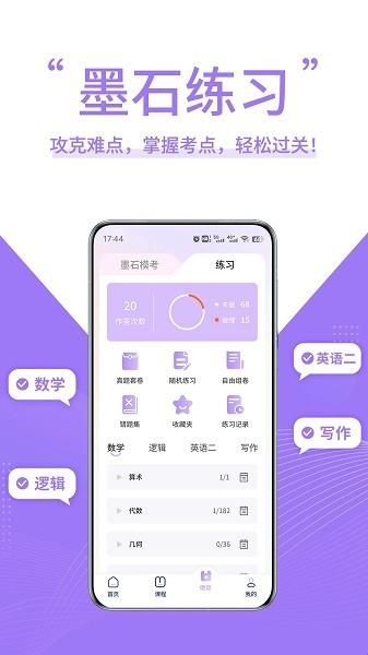 墨石教育是一款专门为管理类硕士考生提供的一站式复习备考软件,内有根据最新考试政策推出的模拟考试题目,用户可以免费练习,精选优质课程十几年教龄的名师为你答疑解惑,让你的学习之路变得比较顺畅。通过自我指定的学习计划,反复不断地巩固,可以摸索考试的规律,你还可以自己组合试卷考试,需要备考的用户可以下载试试看!