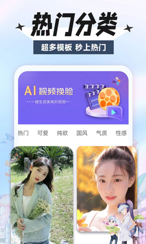 2、好玩的换脸功能,让你的视频脱颖而出,用对戏做换脸视频,随时随地出大片。