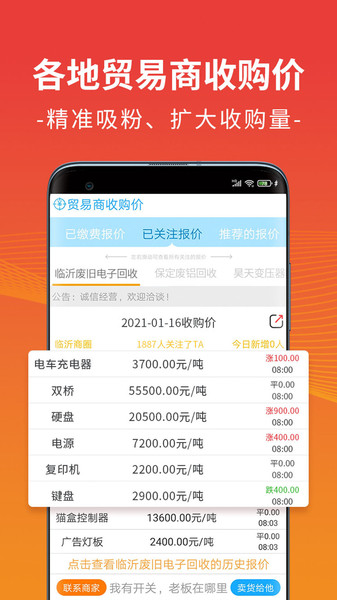 1、点击企业采购价,可查看全国各类废品最新收购价格信息。