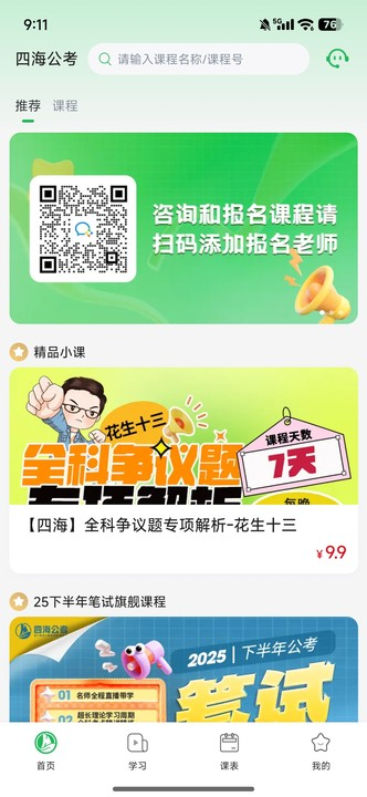 四海公考APP方便了用户日常备考公职开考试的方式,不再需要报线下班,随时随地都能在应用中开启学习之旅,并且诸多课程都能回放观看学习,帮助你能高效提升自己水平,轻松掌握更多的知识,清晰明了的课程日历,可随时在线查看和关注上课的时间,便于能准时加入直播课程学习,同时可实时和老师及同学互动,助力考试可以轻松应对;简单易用的学习软件,快来下载一起学习试试吧!