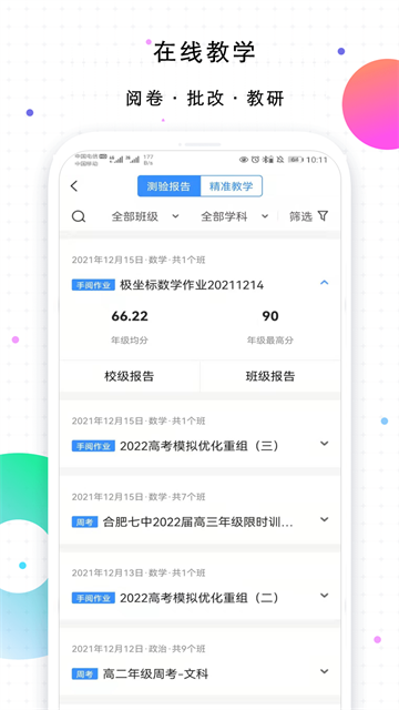2、面向教师:【移动阅卷】支持老师随时随地轻松阅卷、批卷;老师使用手机即可轻松进行【场馆预约】、【设备报修】、【请假管理】、【工资条】、【课程表】等办理、查询;【智慧教研】构建线上教研新方式、助力教师专业发展;【学情分析】方便老师掌握每个孩子学情情况、降低考后教研分析的工作量;【沟通】支持按照组织关系和授课关系自动生成班级群、家校群,提高组织协同的效率;班主任可对班级成员(学生、家长)的聊天权限进行管控,打造绿色安全的校园沟通环境。