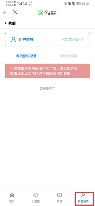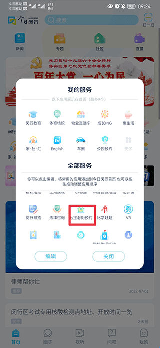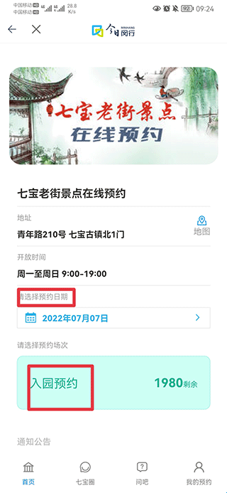 2、在我的服务中点击你要的预约,如七宝老街预约。