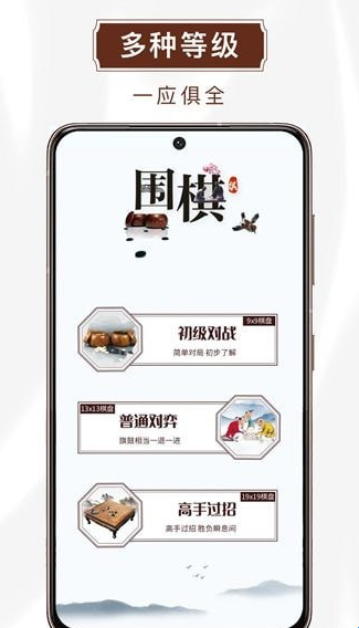 3、支持任意手机都支持5路至19路棋盘,并充分考虑了触摸操作的便利性,具有动听的音效。