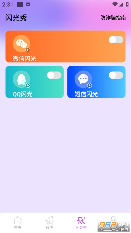 一款非常好用的手机铃声软件,为我们带来超多免费铃声,让我们能够随意设置喜欢的音乐,并且软件内还有闪光秀、防诈骗指南等功能,喜欢这款软件朋友们快来本站下载体验吧。