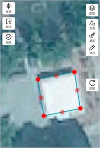 9、点击建筑地址的定位图标,进入地图界面,提供【重画】、【修改】对底图数据进行编辑修改。