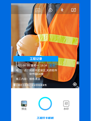 2、考勤打卡、上班打卡、工地打卡、工程打卡、验证考勤真实性的、水印防篡改的考勤工作打卡相机。