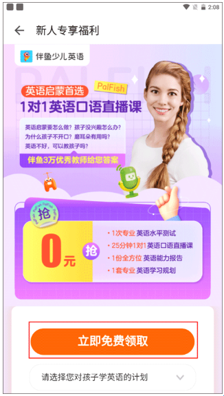 2、你会知道0元抢购会获得什么英语课程资料,在点击下方的“免费领取”按钮之前,需要先回答三个问题,答完之后再次点击按钮。
