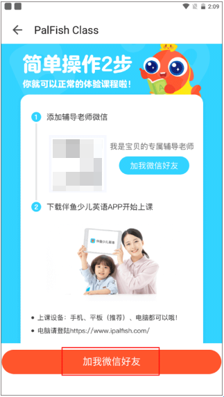 3、根据上方的步骤来免费领取1对1试听课,添加老师的好友。