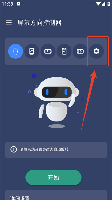 1、进入屏幕方向控制器app后先点击齿轮设置标识