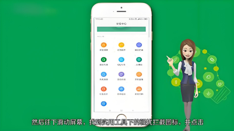 2、然后往下滑动屏幕,找到“实用工具”下的“骚扰拦截”图标并点击。