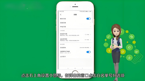 3、接着点击右上角“设置”小图标,在弹出的窗口点击“白名单号码”选项。