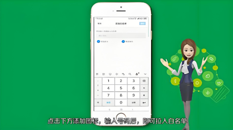 4、最后点击下方“添加”图标,输入号码后,即可拉入白名单。