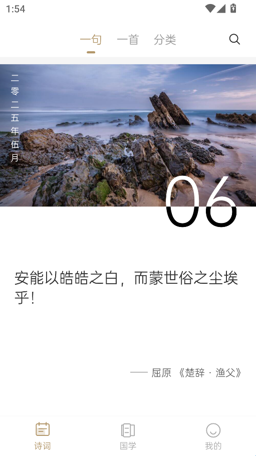 2、沉浸式美学体验:以传统水墨画为视觉基底,搭配简约雅致的文字排版,将古典美学融入每一处细节。使用过程中,用户仿若置身水墨画卷,沉浸式感受国学文化与艺术美学的交融魅力。