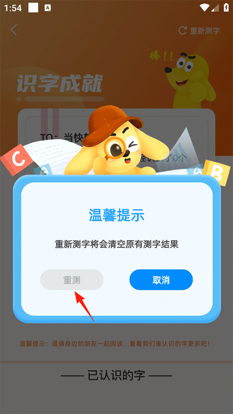 3、重新测字将清除原有测字结果,确认后点击【重测】。