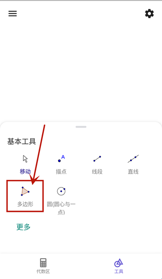 1、首先我们需要打开geogepa软件,在该软件中点击一下【多边形】工具,然后在操作页面上进行绘制。