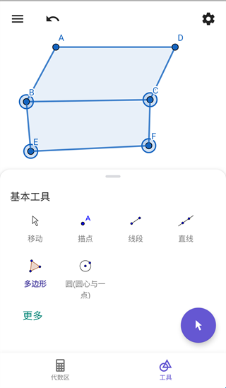 geogebra几何画板软件是一款动态几何画板app,用户可以借助该软件轻松计算、绘制出各种几何图形,通过拖动点探究交互式几何图形,输入相关数据就可以轻松获取美丽曲线,如Bezier曲线等;内容丰富多样,有需要的小伙伴们快来下载体验吧!