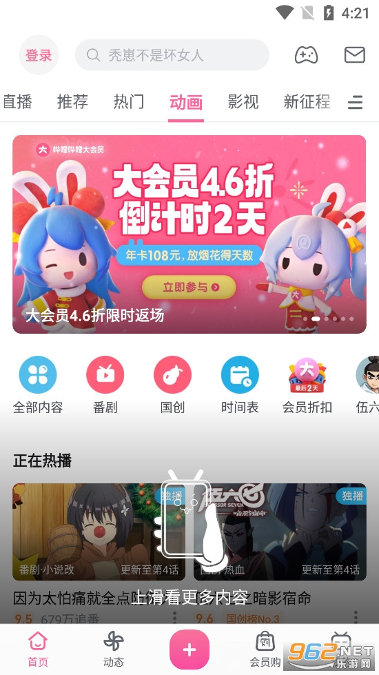 丰富的番剧、国产动画内容,快速获得大量能量