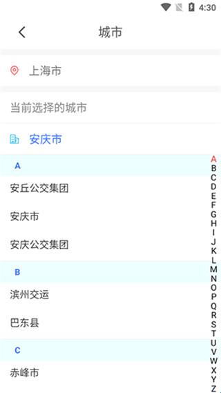 在此页面中能自行选择想要进行公交查询的城市。