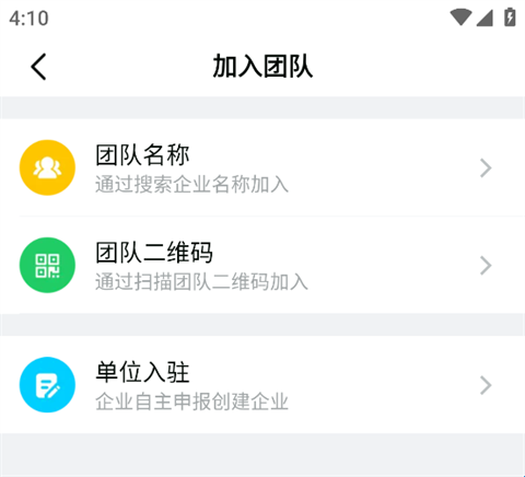 3、点击【加入团队】,输入企业名称搜索即可加入对应企业。