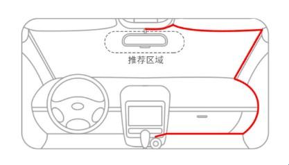 安装前请将玻璃擦拭干净,然后撕下3M胶贴纸,将设备粘贴下图所示的推荐区域。