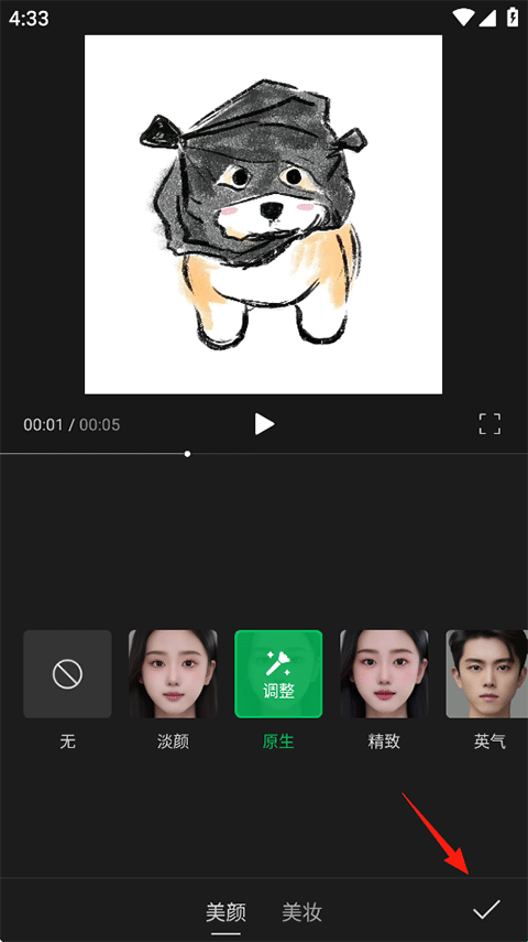 3、选择一个适合的滤镜美颜效果,点击右下角的?确定;