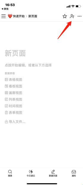 1、打开软件后,在笔记界面点击右上角的“人像”图标。