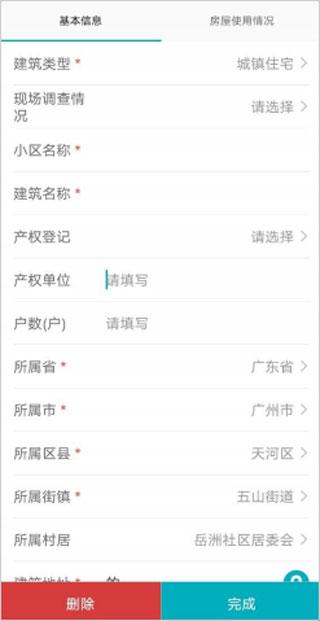 10、若底图中的房屋实际调查已经不存在了,可删除房屋,点击【调查】