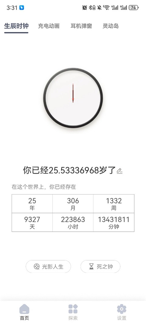 4、记录下你在这个世界上存活了多久,而且岁数会精确到小数后很多位哦,算法很准确。