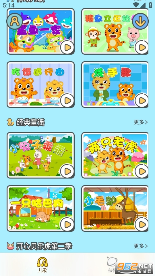 贝乐虎系列专门为儿童打造的一款早教类的软件,软件内拥有丰富的学习资源,各种儿歌童谣应有尽有,还能够进行英语相关的启蒙,能够随时进行下载查看,更有超多精彩的原创儿歌动画,让宝宝在游戏中进行学习哦!