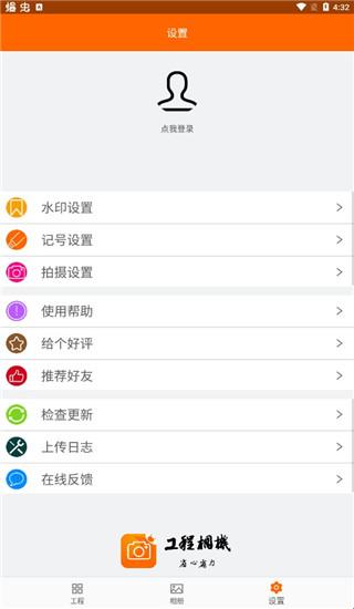 这是一款工程施工拍照管理应用,按照工程及施工地点管理施工照片的水印相机;在照片上添加水印:做施工记号,记录经纬度.海拔.方位角度.地理位置.天气.工程信息及自定义备注等。