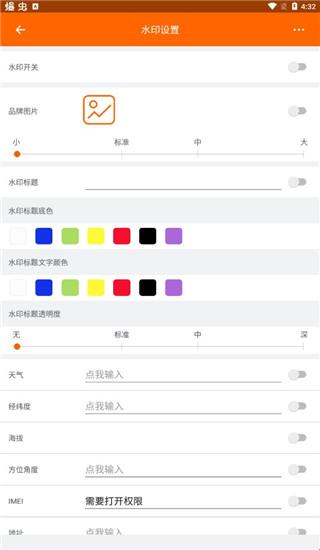 2.在“水印设置”中设置水印开关.天气.地点.经纬度.工程名称等等。