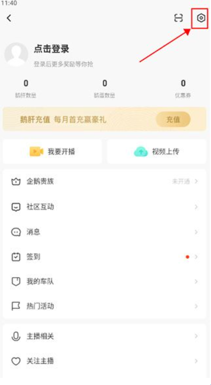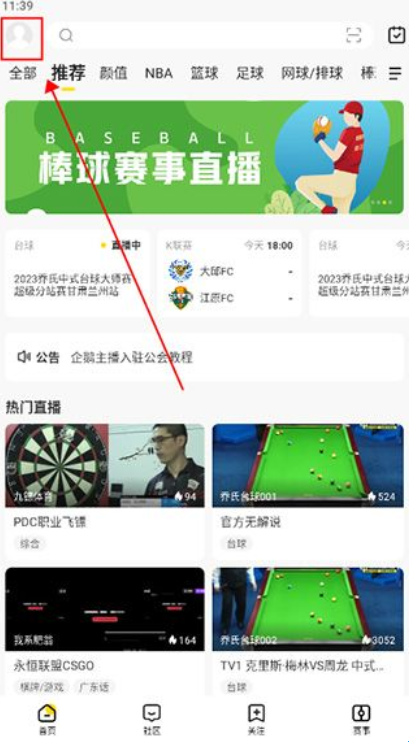 1、打开企鹅体育主页,点击最下方的“关注”,点击你想看回放的主播头像。