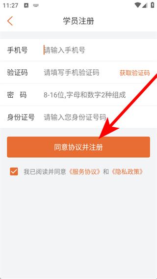 3、在注册页面填写信息后,点击同意协议并注册,完成注册操作。