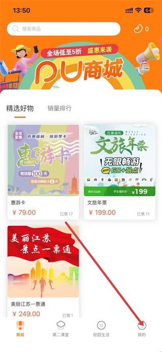 1、打开PU口袋校园,点击底部导航栏我的选项。