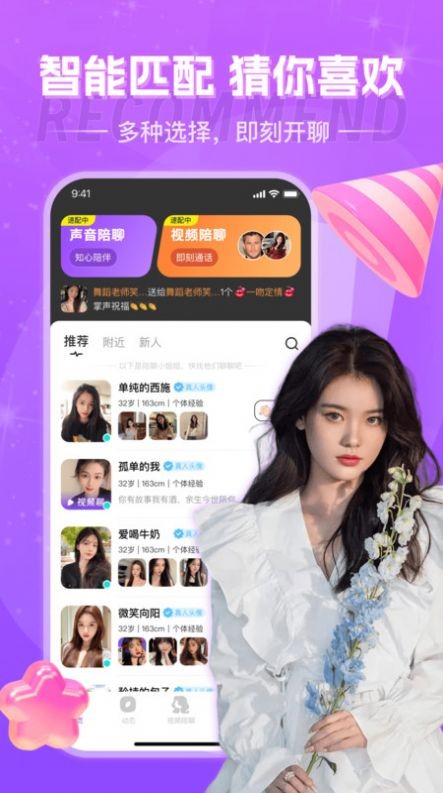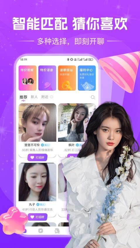 1、智能匹配,猜你喜欢,多种选择,立刻开聊,精彩互动;