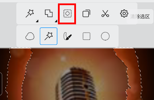 2、点击第一个图标,选择魔棒工具(就是像魔法棒的那个)选择不要的部分(注意是不要的部分!)。