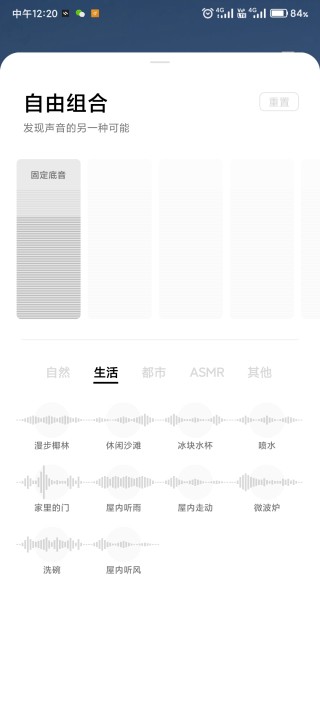 4、自选页面:有丰富的声音元素,你总能在这任意组合,搭配出你喜欢的。