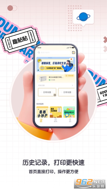 《得力趣贴贴》是全球知名文创科技品牌推出的软件。它精选海量标签编辑素材并持续更新,支持两种标签生成打印方式,结合特色功能打造个性化标签,能拆解家庭收纳步骤,让收纳整理不再繁琐。