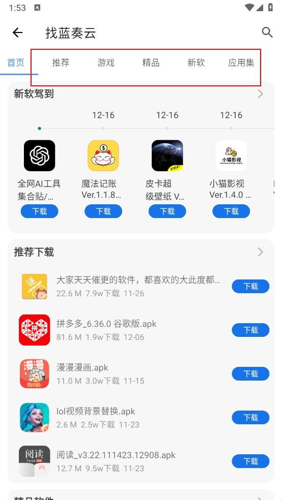 1、先在本站下载安装软件,一键打开进入,点击"app大全"进入。