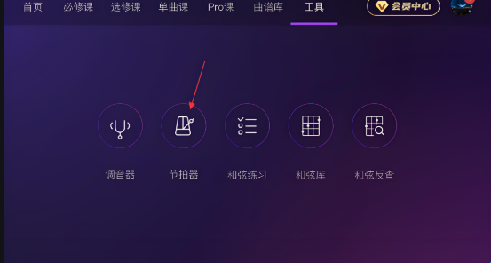 2、在工具页面中,点击节拍器图标,进入节拍器功能界面。