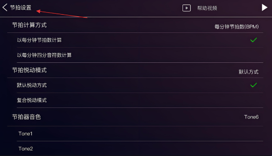 4、在节拍设置页面,可根据需求选择节拍计算方式、节拍悦动模式、节拍器音色等。